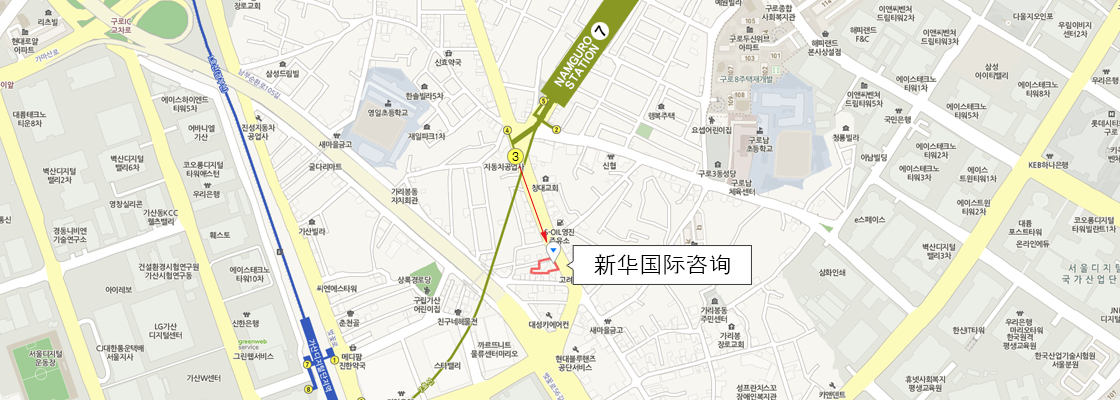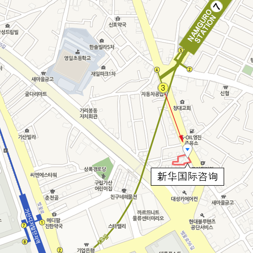 首尔市 九老区 九老洞路15, 1楼首尔地铁7号线 南九老站 3号出口,直行80米处新华国际咨询
